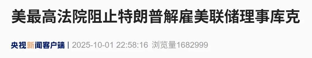10月1日晚间,美联储还迎来一大胜利——最高法院暂不允许特朗普解雇美联储理事库克。
